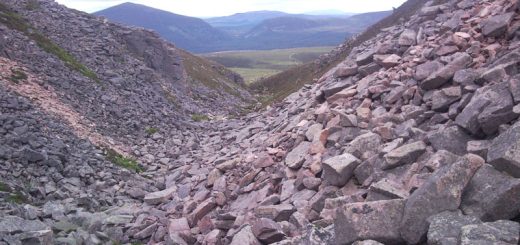 Ben Cruachan is about 2.5km due west but its an up and down journey. I drop down about 150m to the beallach and then ascend 150m to Drochaid Ghlas, there is a large cairn here marking the way but I my mind is in neutral and I head along Drochaid glas ridge hahaha. Realising the cairn isn’t Ben Cruachan I turn around and head off along the Ben Cruachan ridge. The ridge is over 1km long and is full of small ascents and descents over large and small boulders where the path dissapears and reappears. There are two huge sloping slabs to cross on the journey which are quite grippy when I descend over them. I notice a lower path which appears to bypass these slabs and continue on my way to the final climb and reach the summit. A walker passes me on his way down and we exchange hello’s. There is another walker on the summit and he is doing the two Munro’s today. I stop for some replenishment as he heads of along the ridge. 4 Munro’s bagged (1 twice hahha) but my day is not finished. I still have the corbet to do.