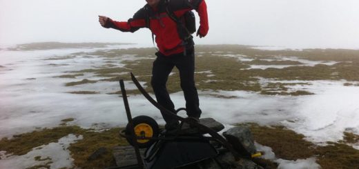 Eididh nan Clach Geala is approximately 1.7km Due North with a walk of 3km in a horseshow around the Corrie, which we could not see, down to the Lochan and then up to the summit. As we ascend to the summit we meet our first walkers of the day, Smudger 71 and his son Daniel. I first met The Smiths on Beinn Dearg Blair Athol. Young Daniel had done more than 125 munros at the time and in fact in February 2013 at the age of Nine Daniel became the youngest person to complete a round of the Munro’s. Awesome. We soon arrive on the summit of Eididh nan Clach Geala. There is a second cairn on the summit so we visit both just to be sure hahaha. We don’t hang around here and we head again into the clag.