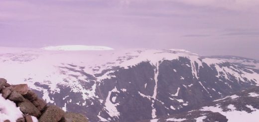 Six Munro’s East of Glenshee. The Glenshee Ski centre sits just off the A93 14km South of Braemar at a height above sea level of almost 650m. A large number of Munro’s in the Southern Cairngorms can be accessed from this high pass. On this occasion I chose to walk the 6 Munro’s to the East of the A93. The start point is 3km North of the Ski centre at a height of about 500m so there is a relatively short climb to the first Munro.