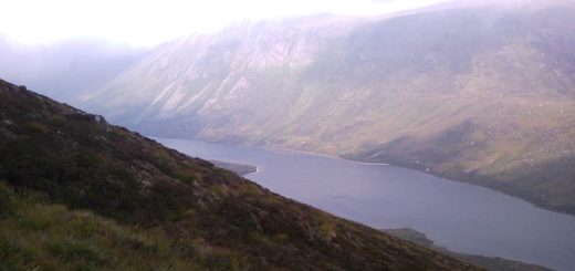 So I now head South over Leac Ghorm and descend to the Beallach. Beinn Bhrotains boulder slope is glistening silver in the sunshine. It’s just under 200m of climb over 1km to reach the summit but it is one huge boulder field and I am feeling a bit tired. However with head down and watching each footstep I soon reach the summit. There is a trig point here and a separate shelter cairn so I take shelter in the shelter cairn and have some more food. I have bananas and more flapjack but I know my body is looking for come pasta which I don’t have. Not to worry, its only 20km and one Munro back to the car hahaha.